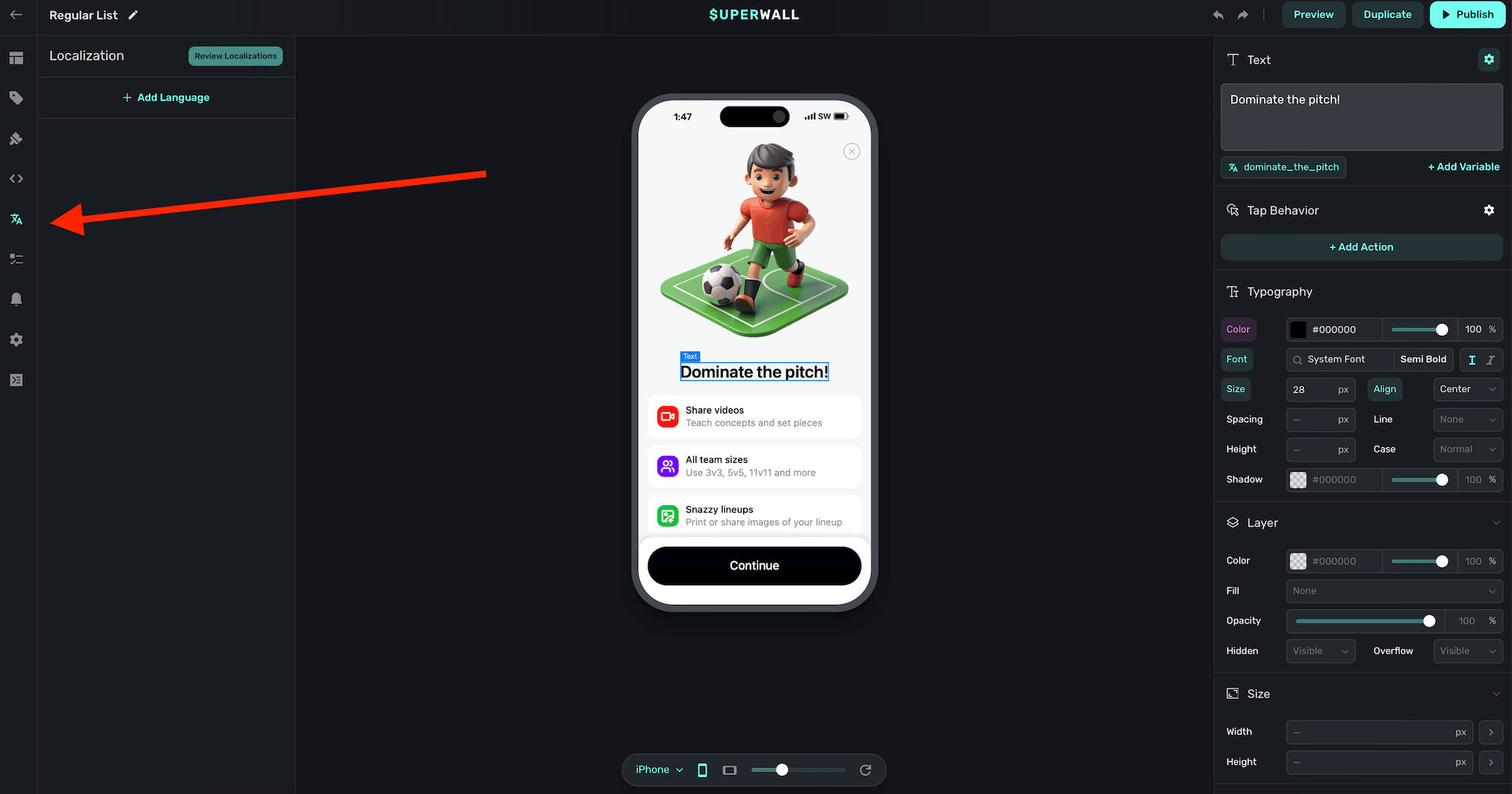To localize your paywall, click on the Localization button from the sidebar: