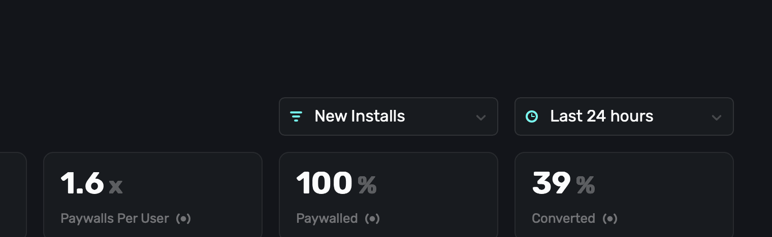 | Paywalls Per User | The percentage of paywalls shown per user. Remember, each user may see more than one paywall per session. |